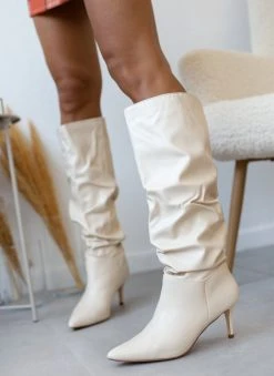 The Fashion Project Μπότες μυτερές με σούρες – Μπεζ