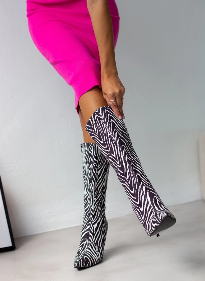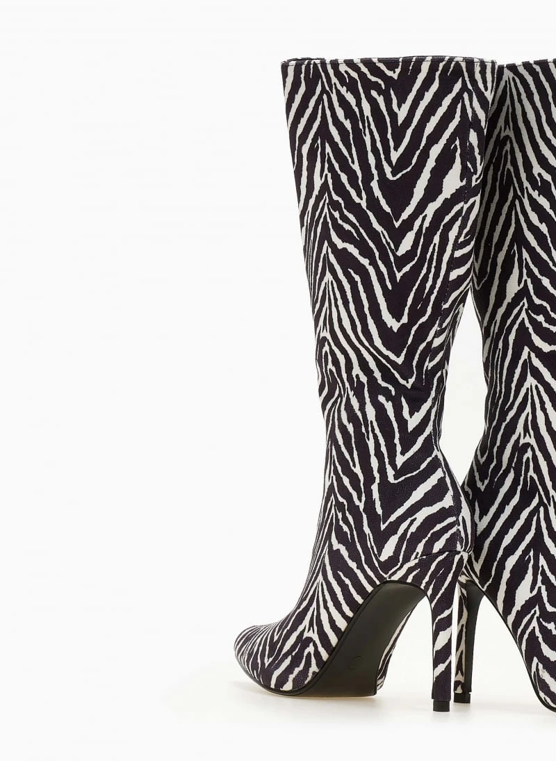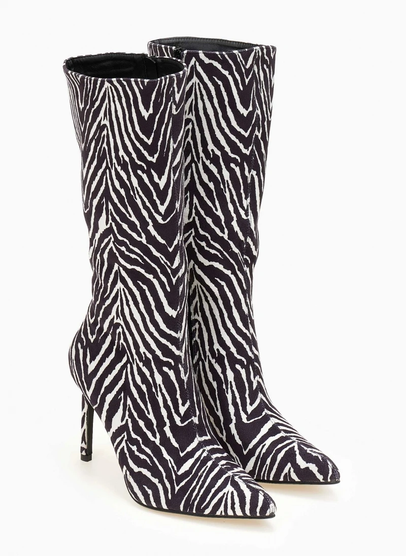 The Fashion Project Μπότες μυτερές Suede με λεπτό τακούνι – Λευκό/Μαύρο