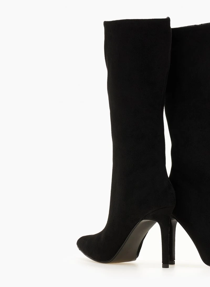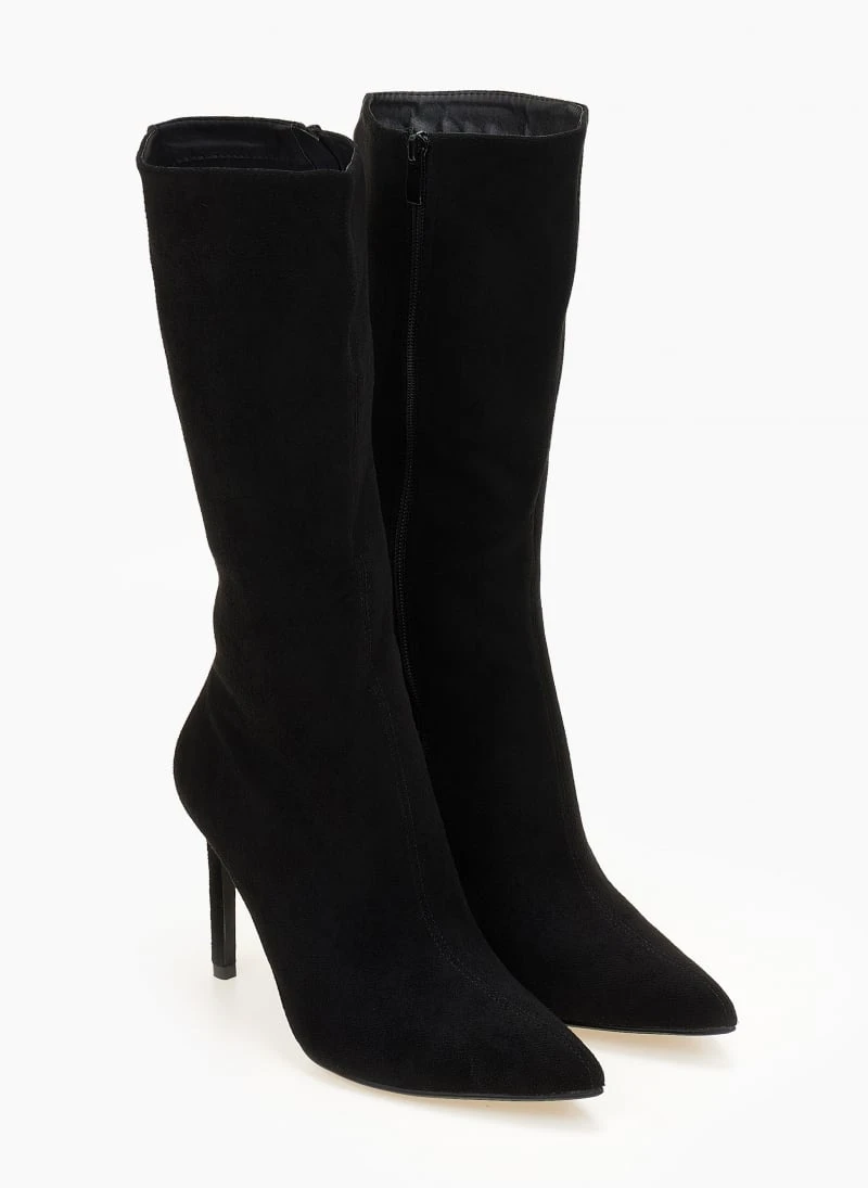 The Fashion Project Μπότες μυτερές Suede με λεπτό τακούνι – Μαύρο