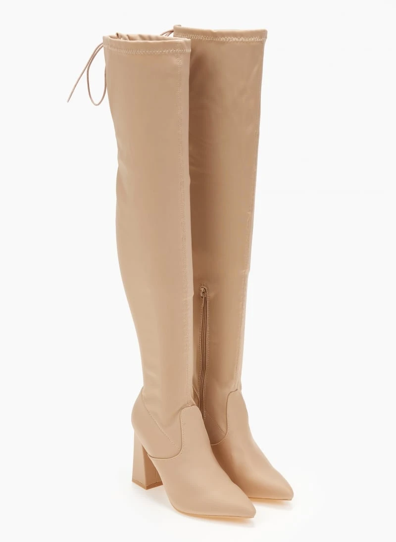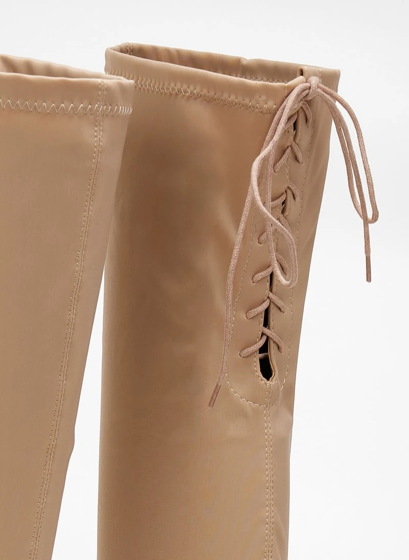 The Fashion Project Μπότες πάνω από το γόνατο με ελαστική γάμπα – Μπεζ