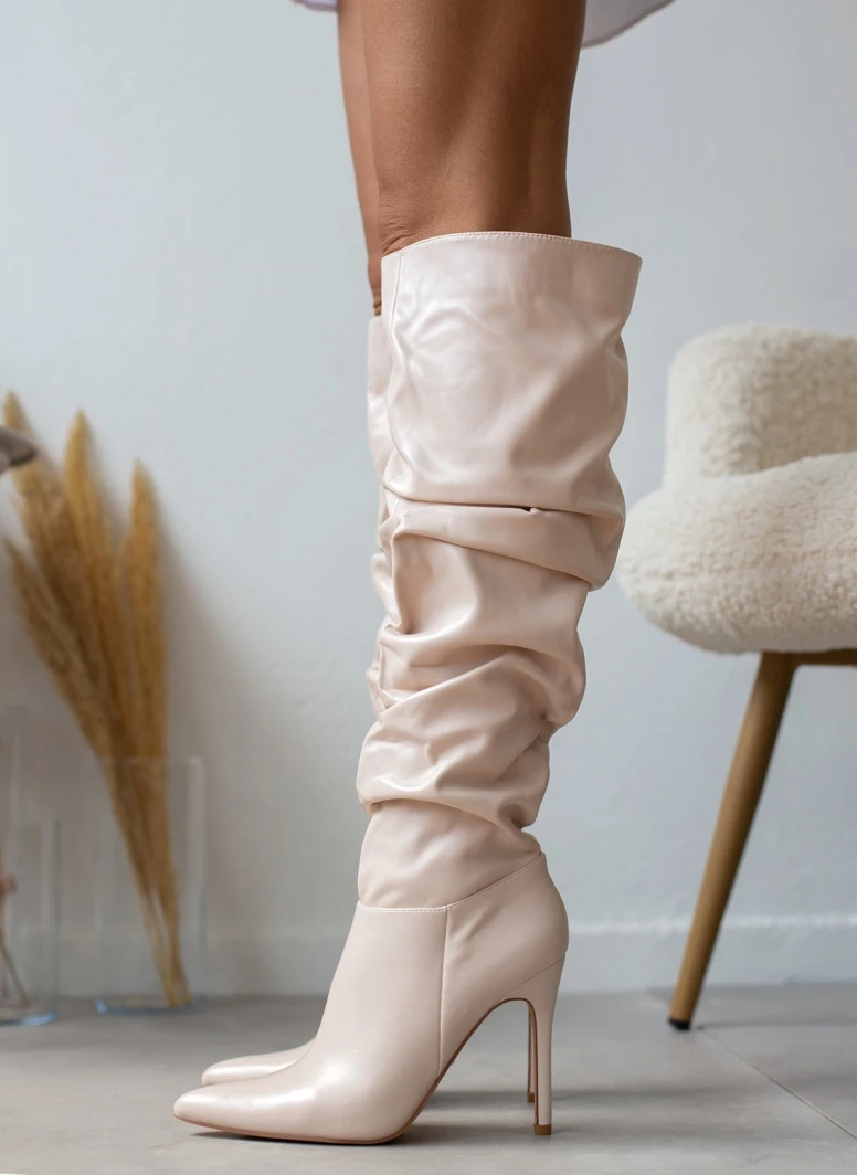 The Fashion Project Μπότες ψηλές με σούρες – Μπεζ