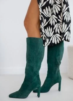 The Fashion Project Μπότες Suede με φαρδύ τακούνι – Κυπαρισσί