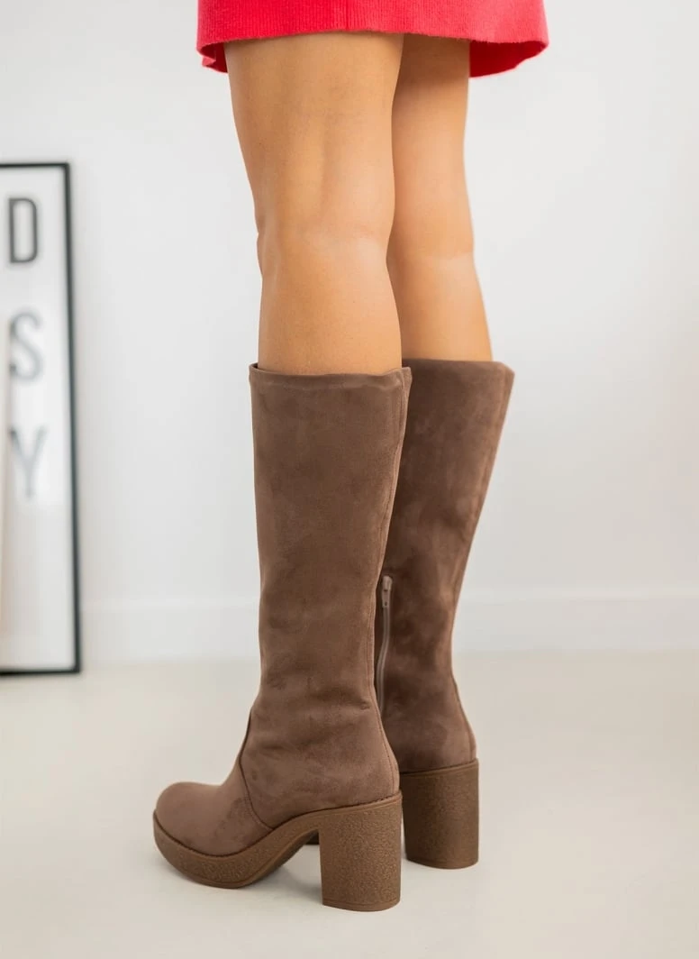 Μπότες suede με κρεπ σόλα και τακούνι. Σρογγυλή γραμμή. Ελληνικής κατασκευής.