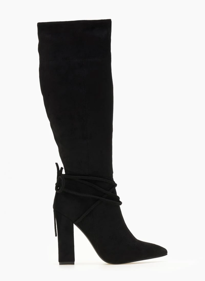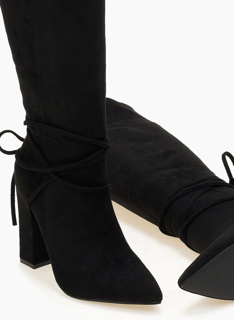 The Fashion Project Μπότες Suede μυτερές με κορδόνια – Μαύρο