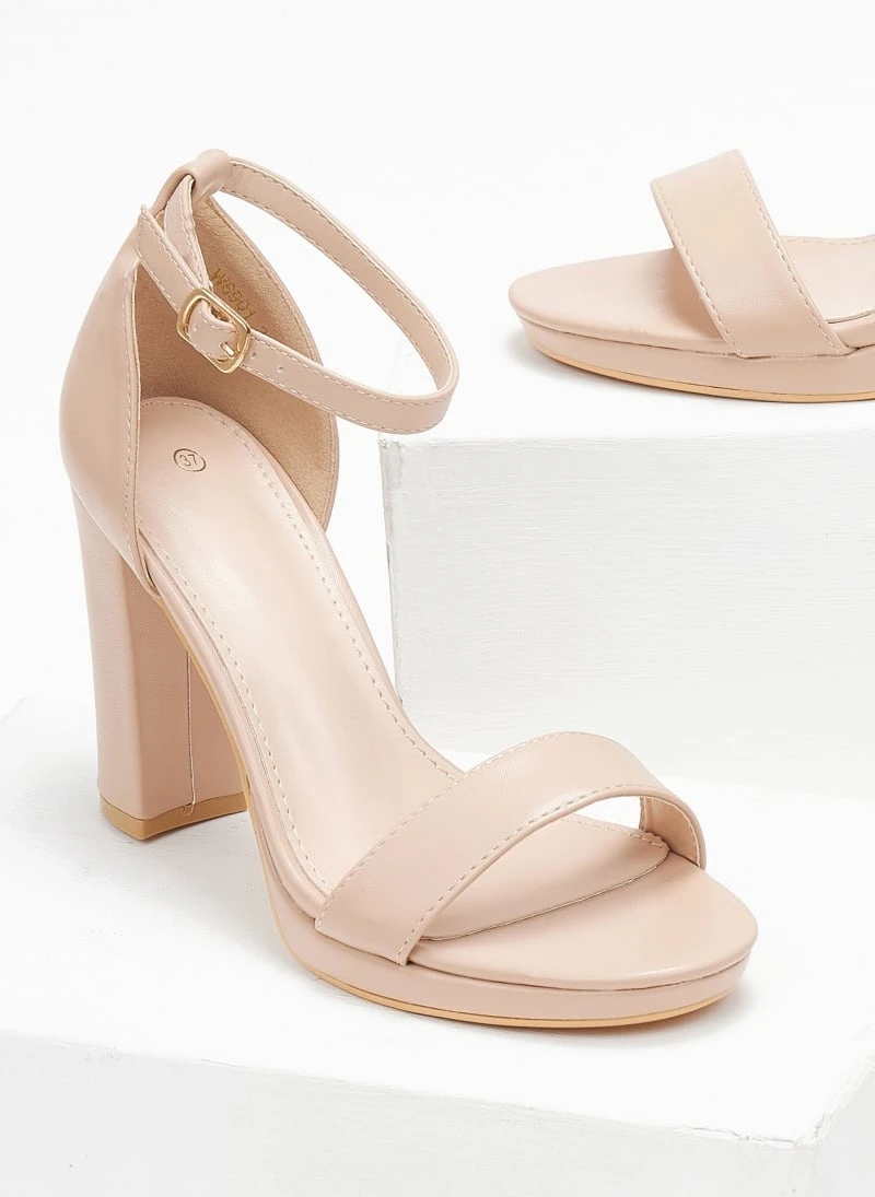The Fashion Project Πέδιλα με μπαρέτα και χοντρό τακούνι – Μπεζ