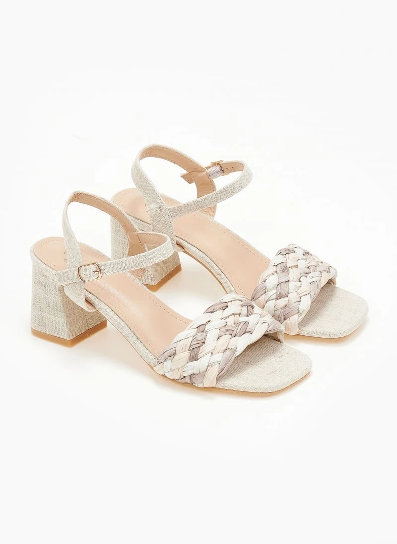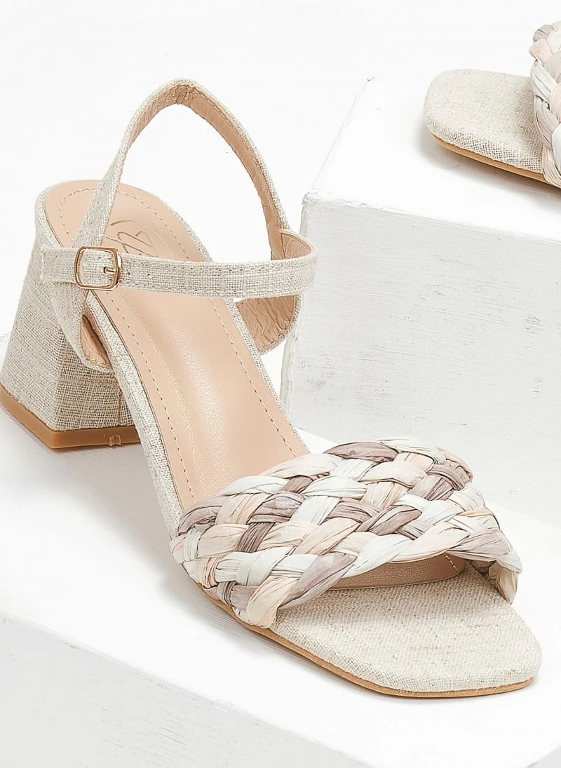 The Fashion Project Πέδιλα με μπαρέτα και πλεκτή φάσα – Μπεζ