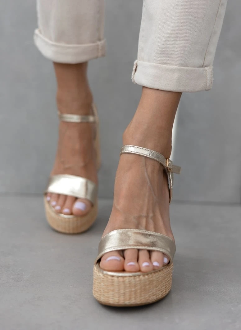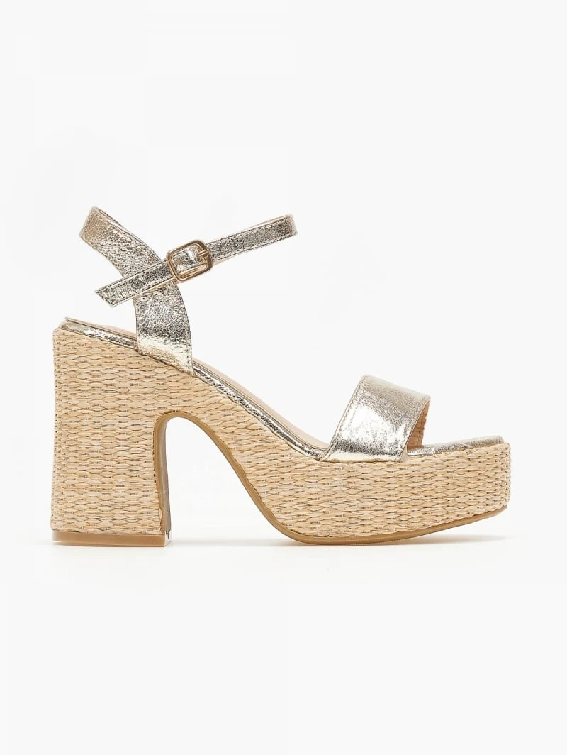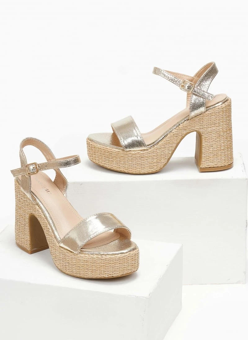 The Fashion Project Πέδιλα με μπαρέτα και ψάθα στη σόλα – Χρυσό