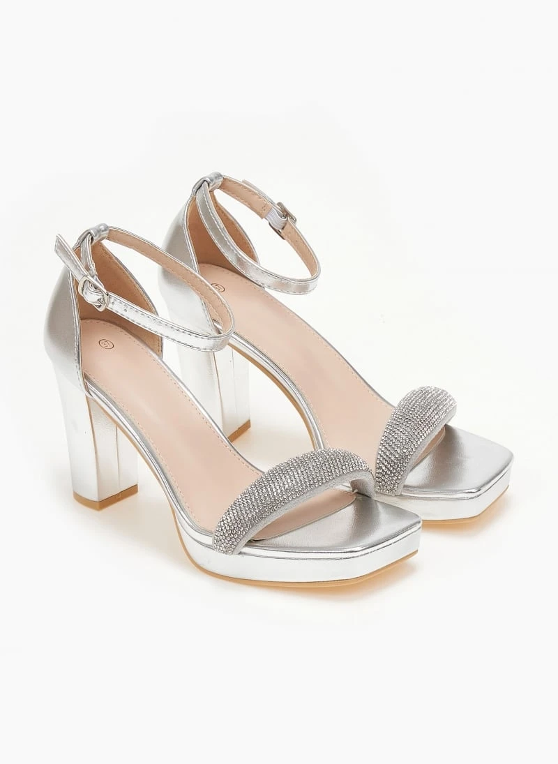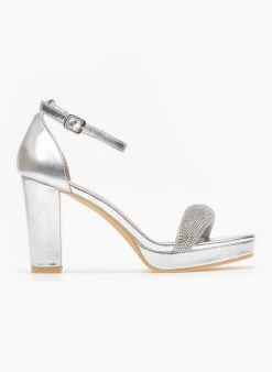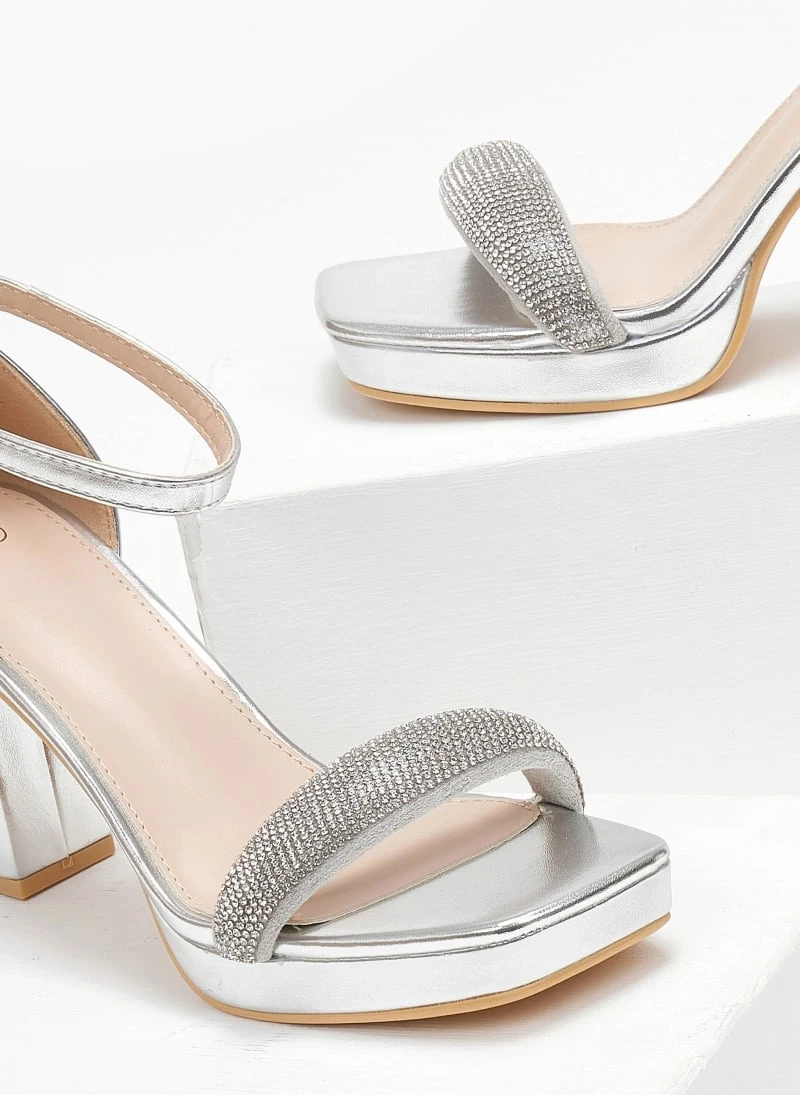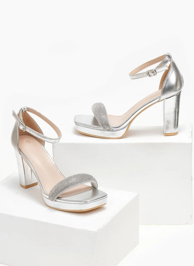 The Fashion Project Πέδιλα με μπαρέτα και στρας φάσα – Ασημί