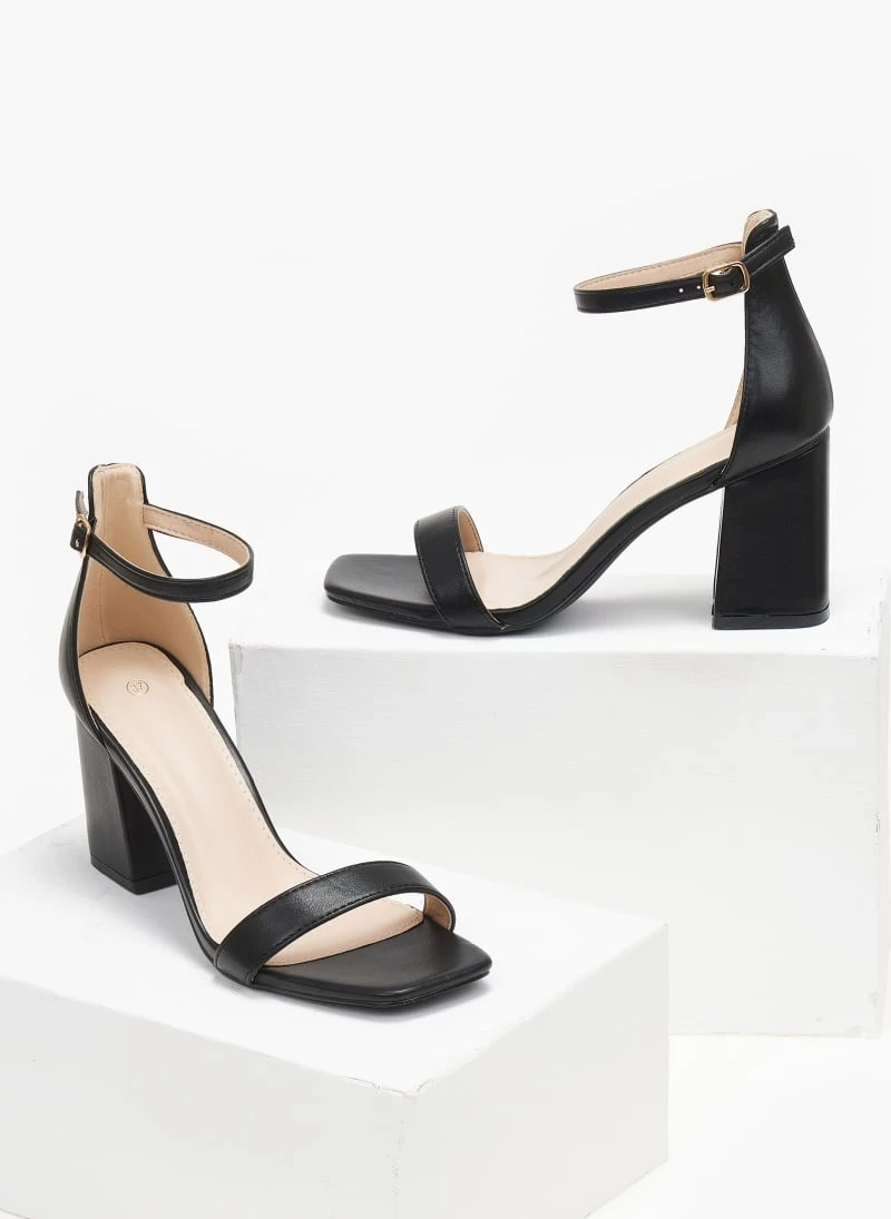 Πέδιλα σε καρέ γραμμή. Έχουν κλειστή φτέρνα. Δένουν με μπαρέτα στο ύψος του αστραγάλου.