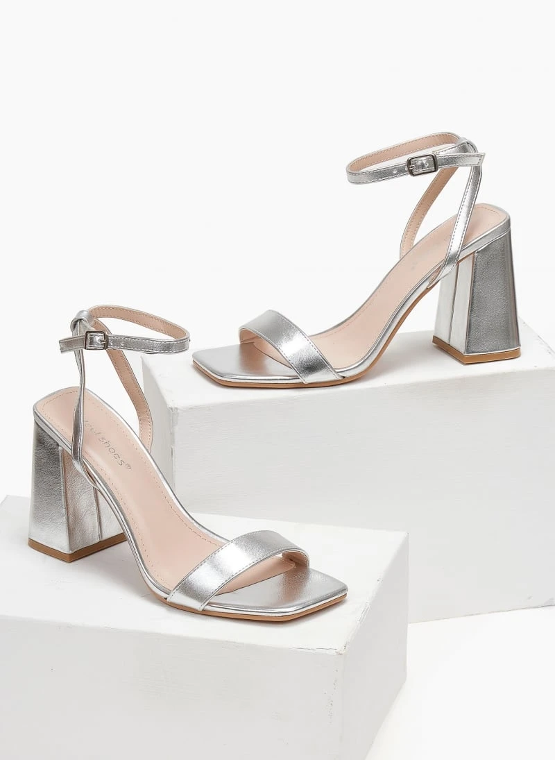 The Fashion Project Πέδιλα με μπαρέτα σε καρέ γραμμή – Ασημί