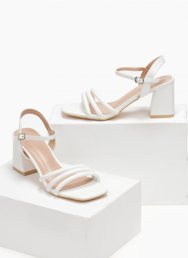 The Fashion Project Πέδιλα με μπαρέτα σε καρέ γραμμή – Λευκό
