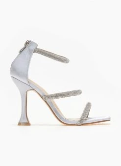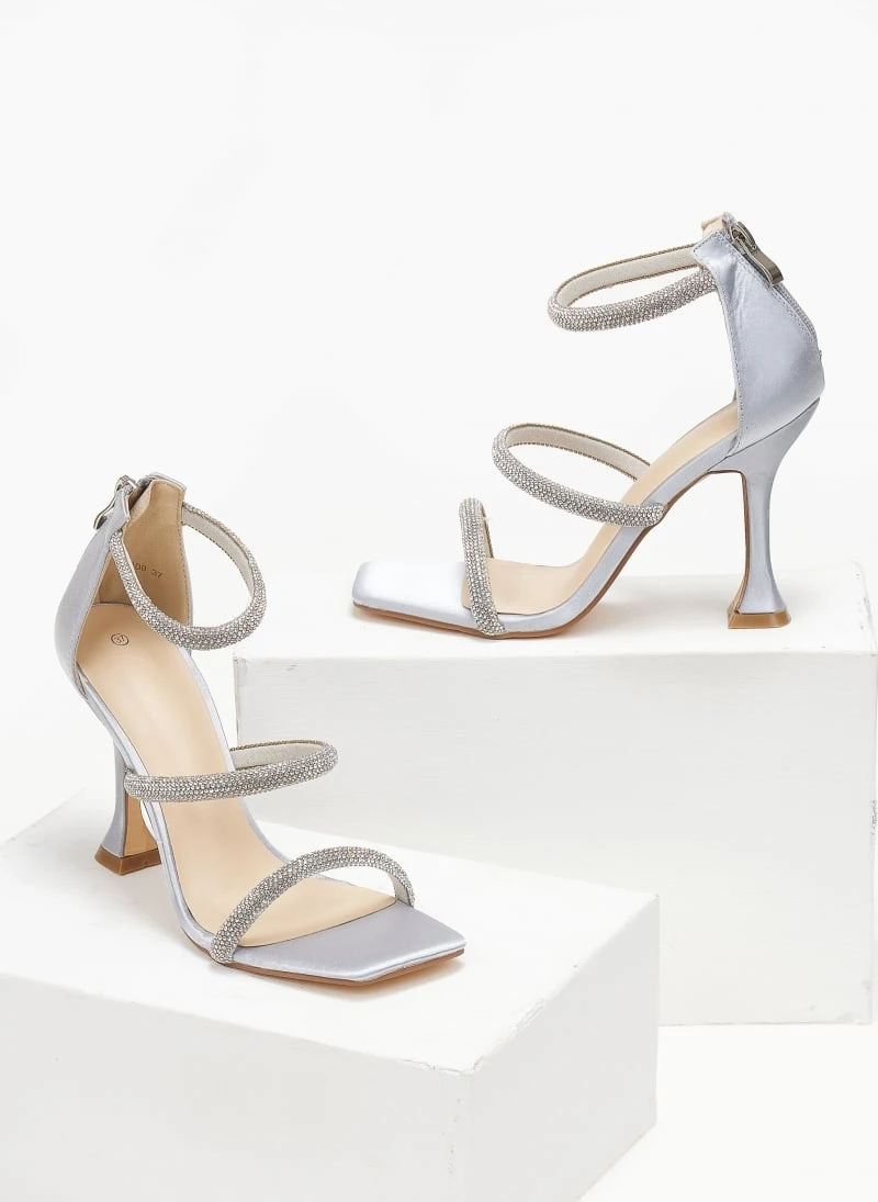 The Fashion Project Πέδιλα με στρας και φερμουάρ σατέν – Ασημί