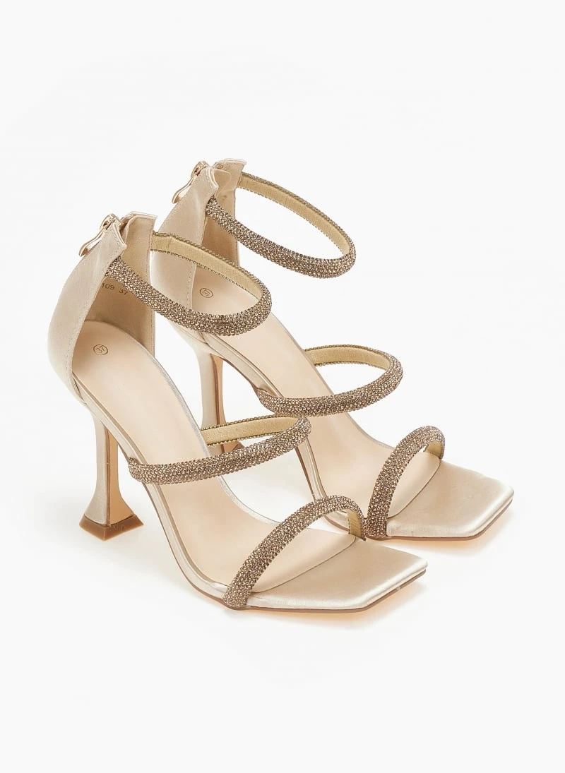 The Fashion Project Πέδιλα με στρας και φερμουάρ σατέν – Χρυσό