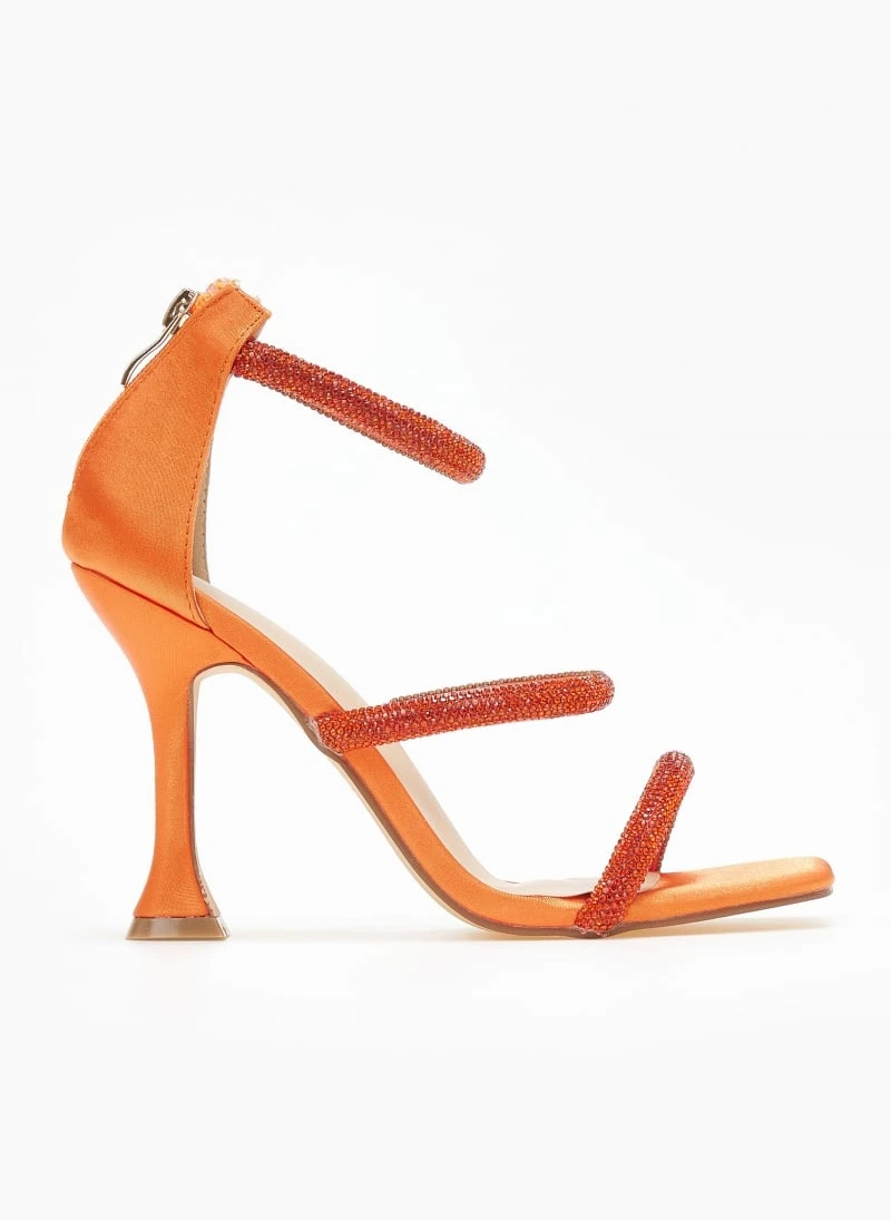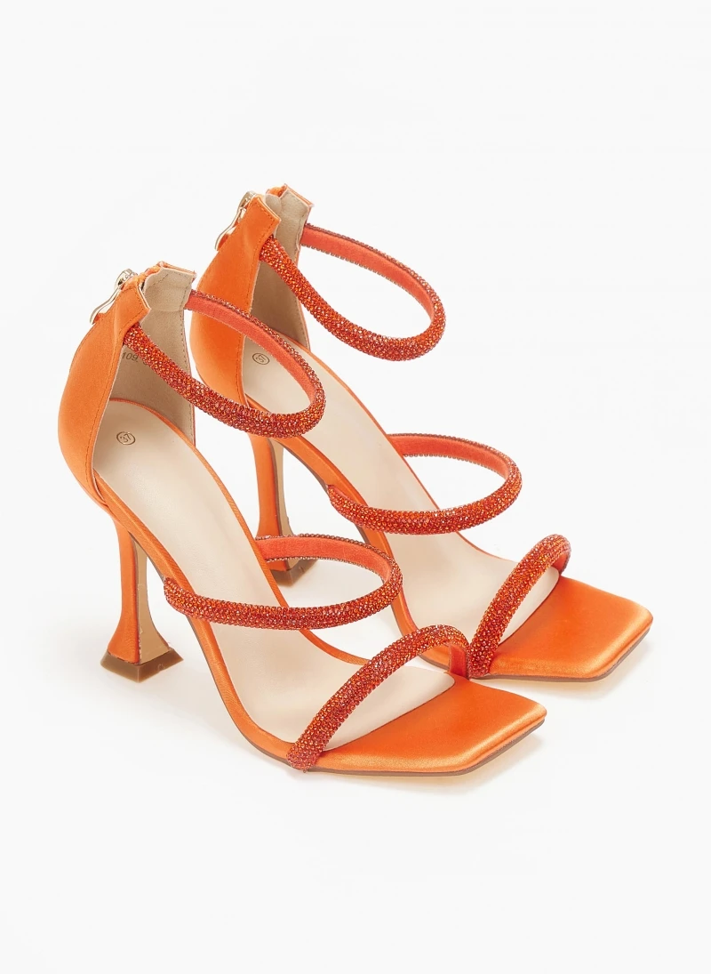The Fashion Project Πέδιλα με στρας και φερμουάρ σατέν – Πορτοκαλί