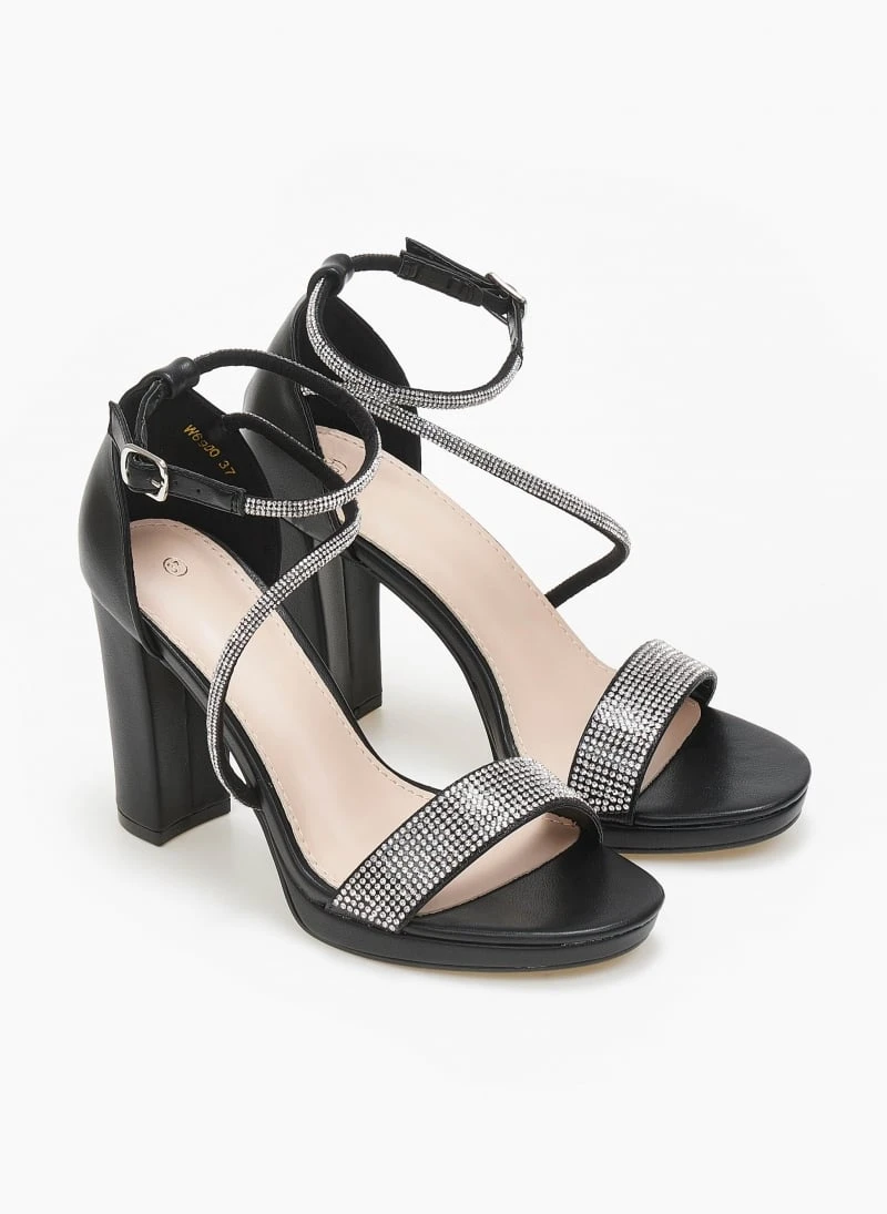 The Fashion Project Πέδιλα με στρας και μπαρέτα – Μαύρο