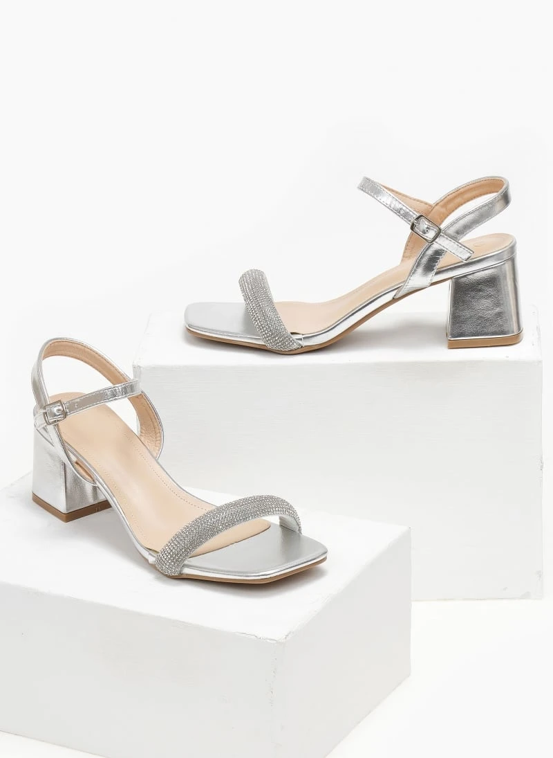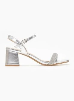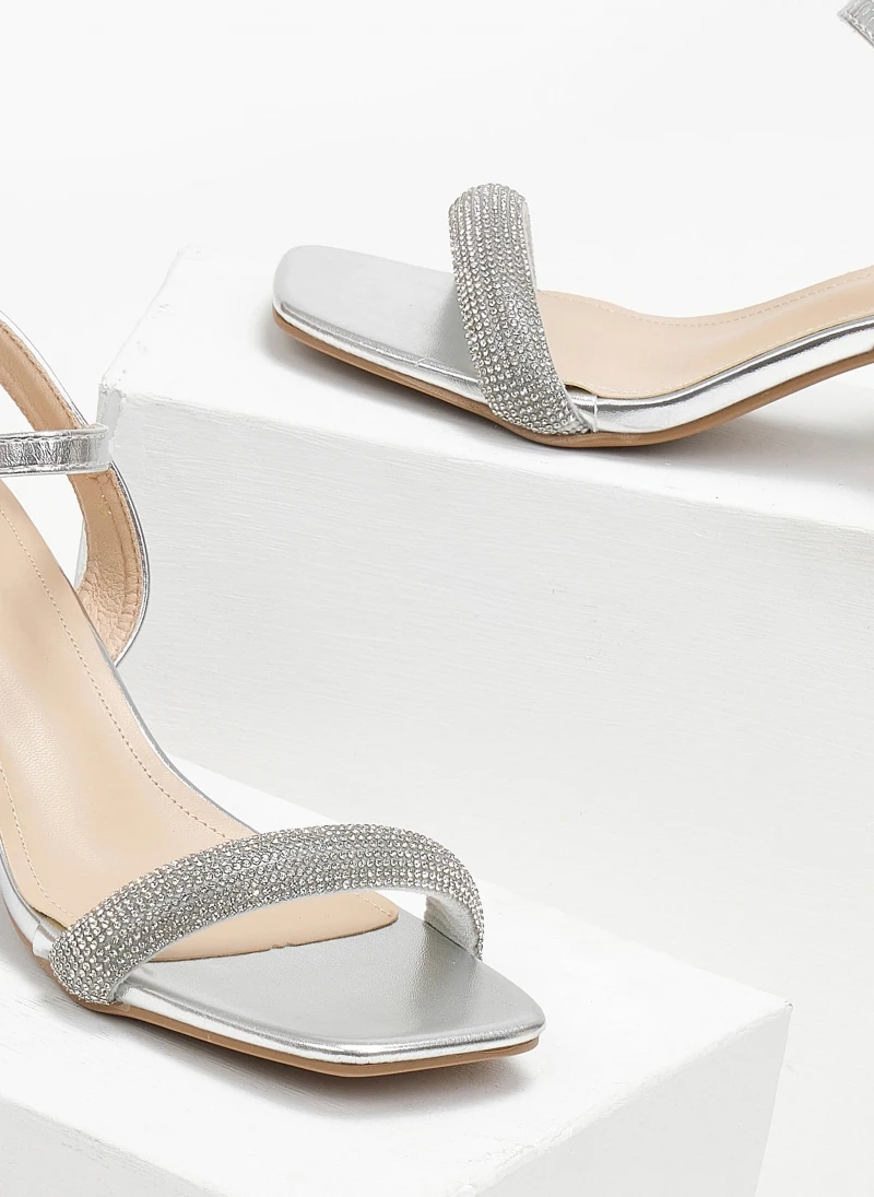 The Fashion Project Πέδιλα με στρας σε καρέ γραμμή – Ασημί