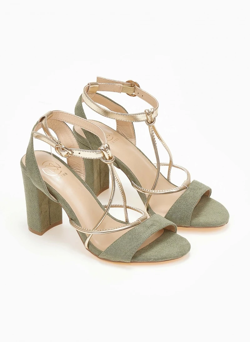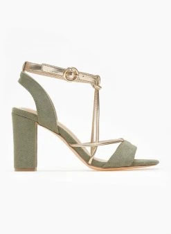 The Fashion Project Πέδιλα Suede με λεπτά λουράκια – Χακί