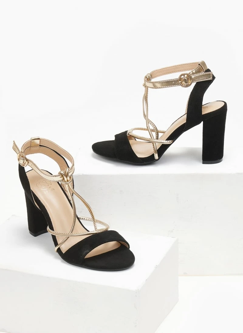 The Fashion Project Πέδιλα Suede με λεπτά λουράκια – Μαύρο