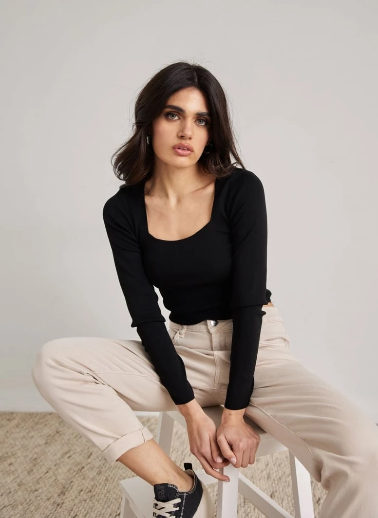 The Fashion Project Πλεκτή μπλούζα με καρέ λαιμόκοψη – Μαύρο