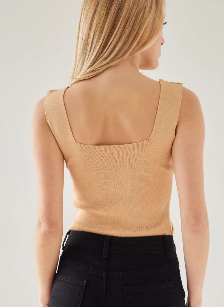 The Fashion Project Πλεκτό τοπ με καρέ λαιμόκοψη – Κάμελ