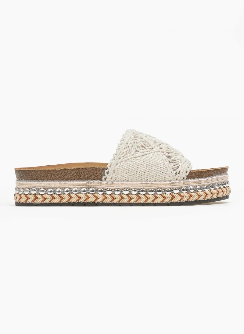 Flatform σανδάλια με ντυμένη ιδιαίτερη σόλα και πέρλες. Έχουν crochet φαρδιά φάσα. Πάτος με ανατομικό σχήμα.