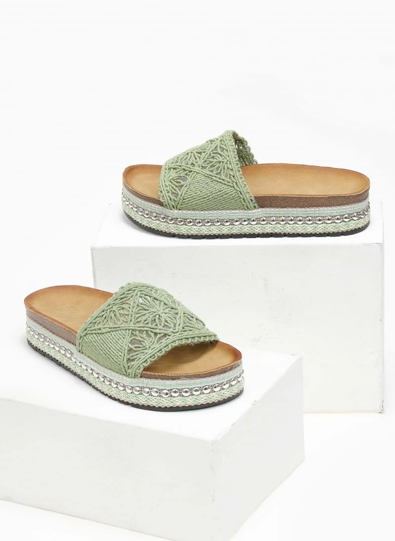 The Fashion Project Σανδάλια με Crochet φάσα και πέρλες – Πράσινο