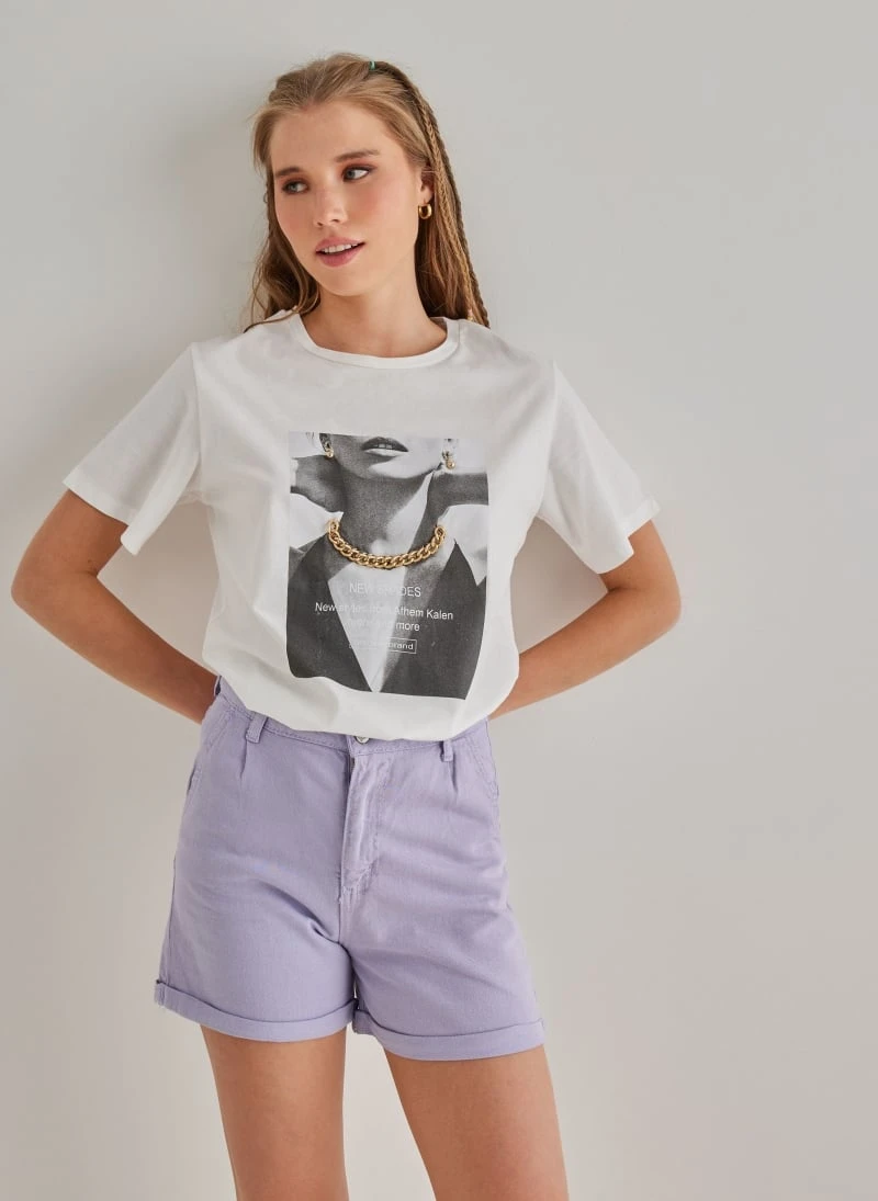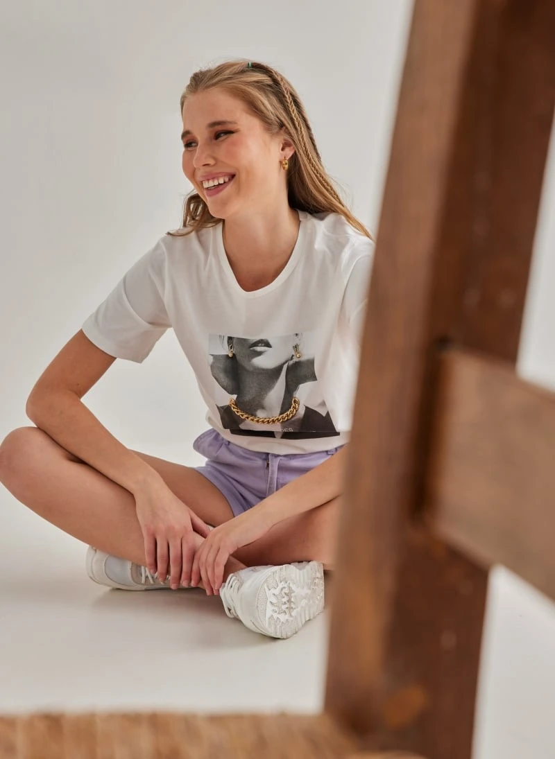 Βαμβακερή 100% κοντομάνικη μπλούζα με στάμπα και αλυσίδα.