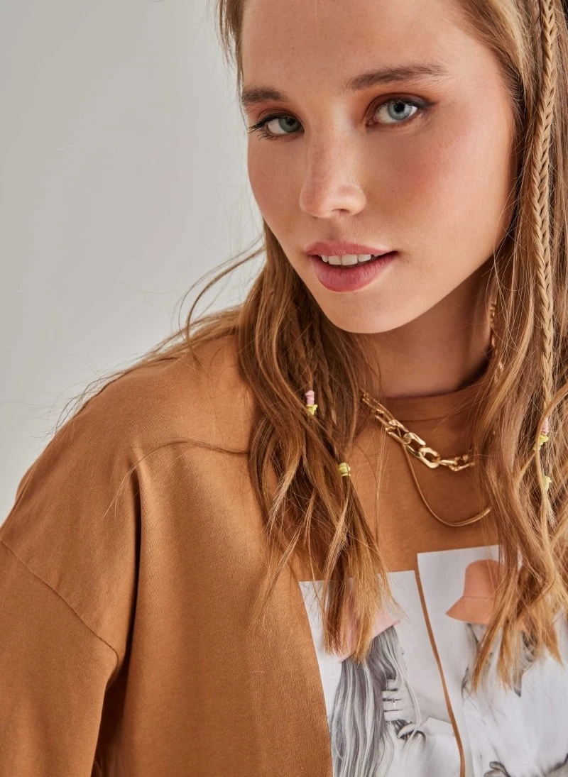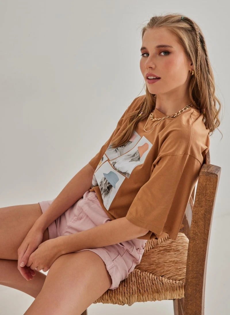 Κοντομάνικη μπλούζα με στάμπα.Άνετη γραμμή.