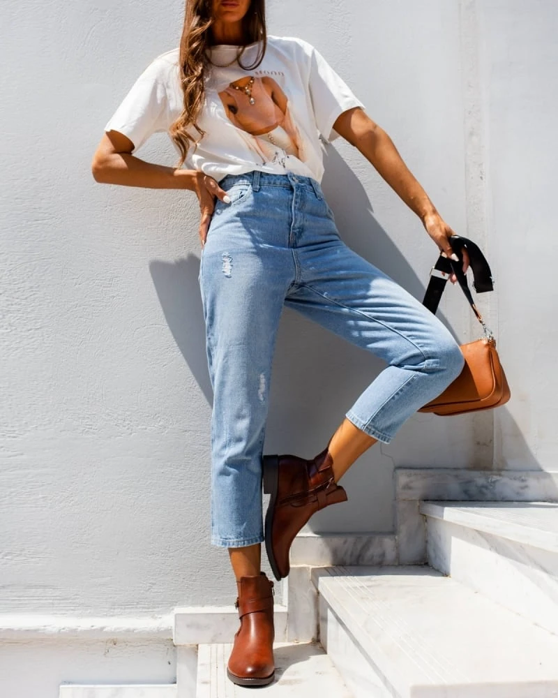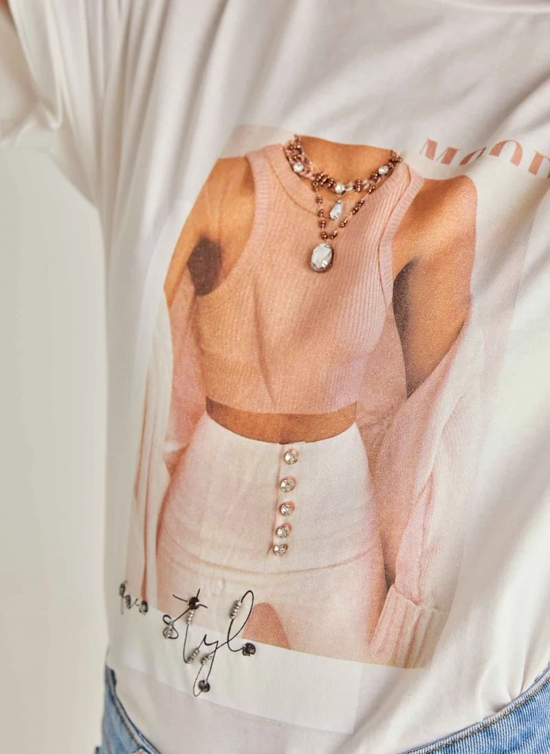 T-shirt με στάμπα και διακοσμητικές πέτρες.