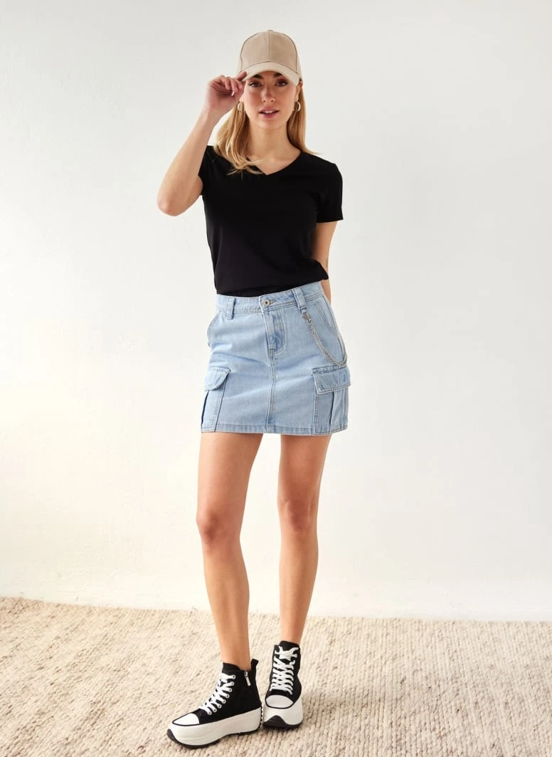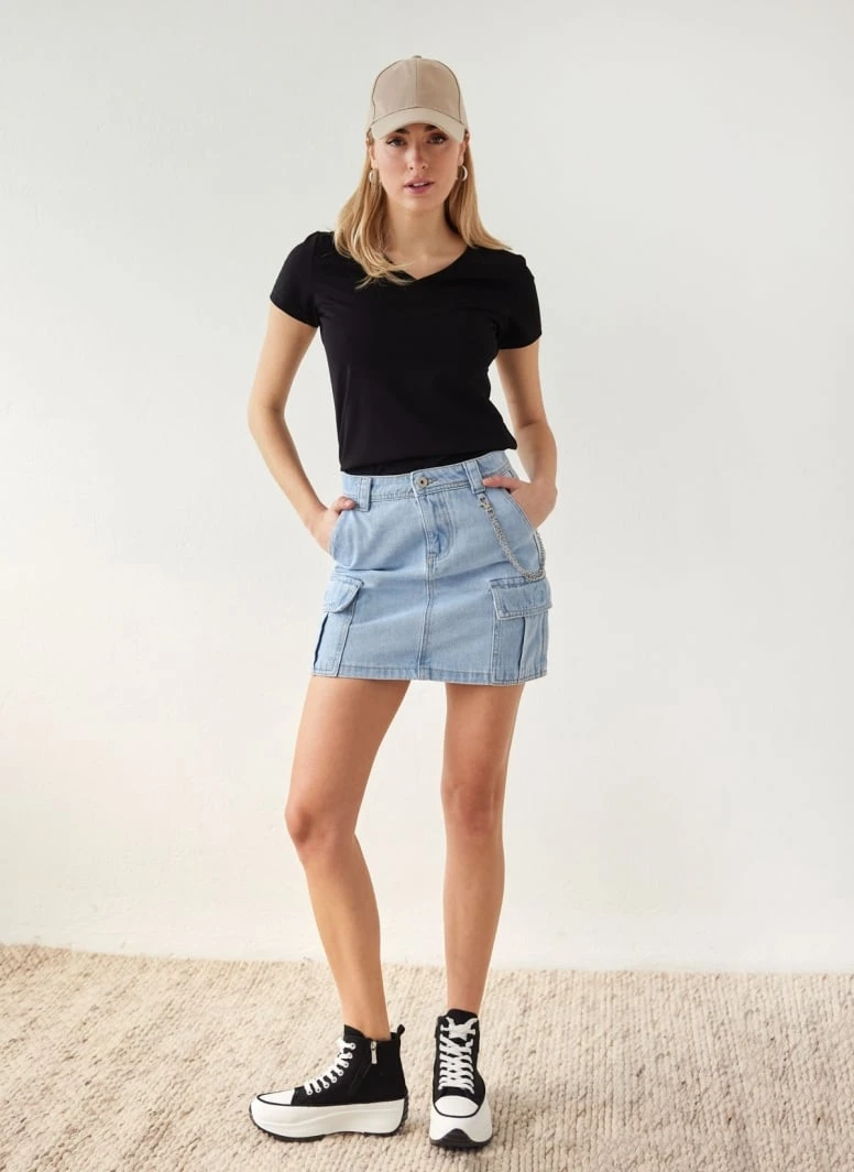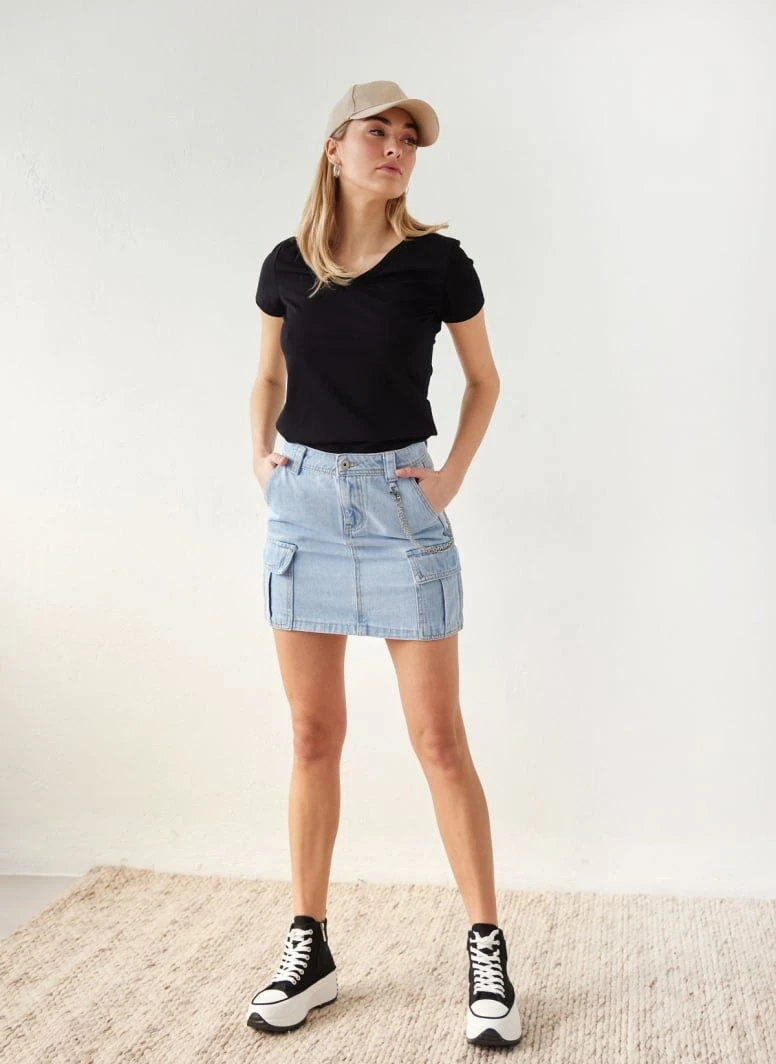 T-shirt με v cut λαιμόκοψη. Ίσια γραμμή.
