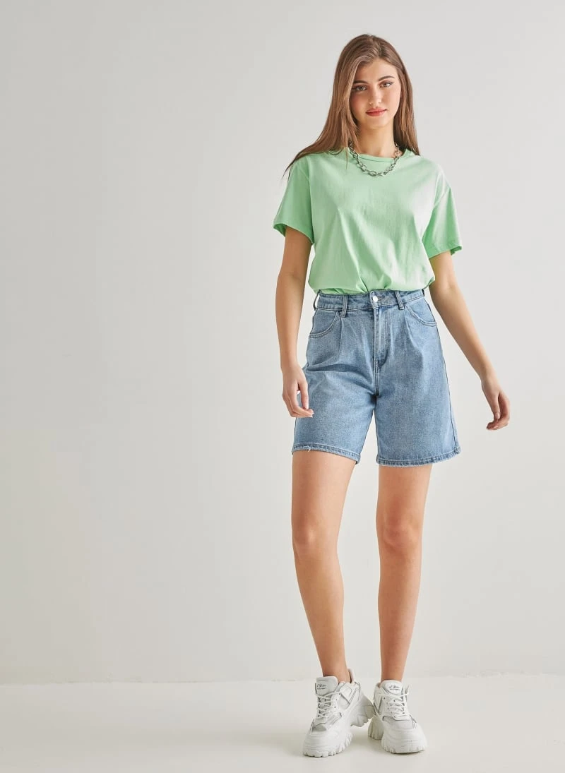 Βαμβακερή κοντομάνικη μπλούζα σε oversized γραμμή.