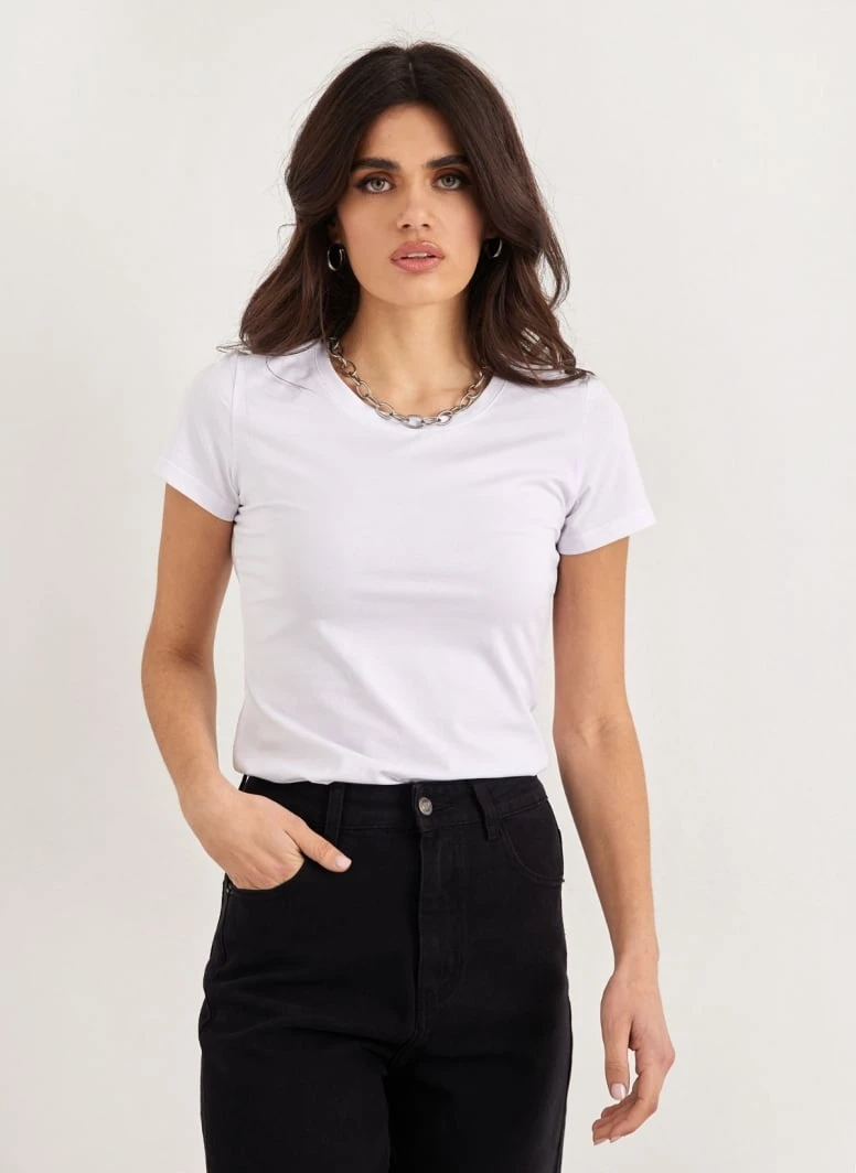 Basic βαμβακερο κοντομάνικο t-shirt με ανοιχτή λαιμόκοψη.