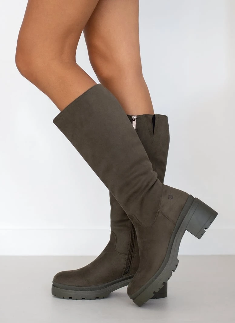 Xti Footwear Μπότες Suede με τετράγωνο τακούνι Xti 140579 – Χακί