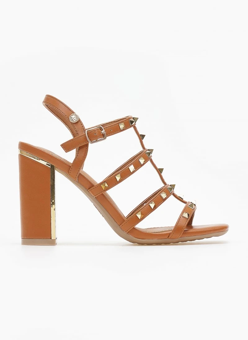 Πέδιλα σε καρέ γραμμή Xti. Έχουν λεπτά λουράκια με μεταλλικά τρουκς. Μεταλλική λεπτομέρεια στο τακούνι. Δένουν στο ύψος του κουτεπιέ.Σόλα από λάστιχο. Peta vegan approved.