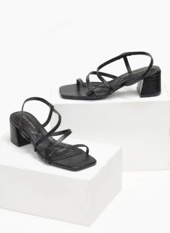 Πέδιλα με χαμηλό τετράγωνο τακούνι και μεταλλική λεπτομέρεια. Έχουν μαλακό μαξιλαράκι στον πάτο. Δένουν με μπαρέτα στο ύψος του κουτεπιέ. Καρέ γραμμή. Approved vegan.